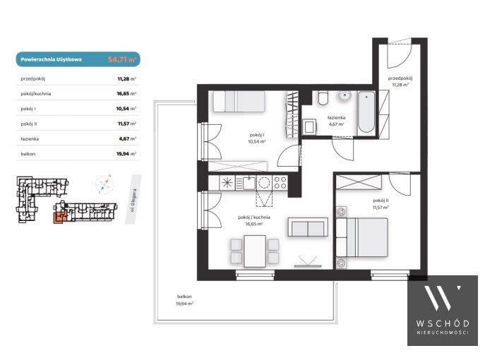 - Ekspozycja okien: południe zachód wschód