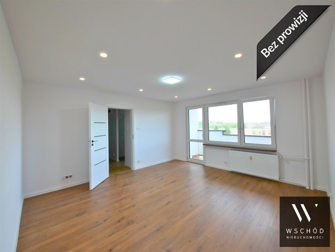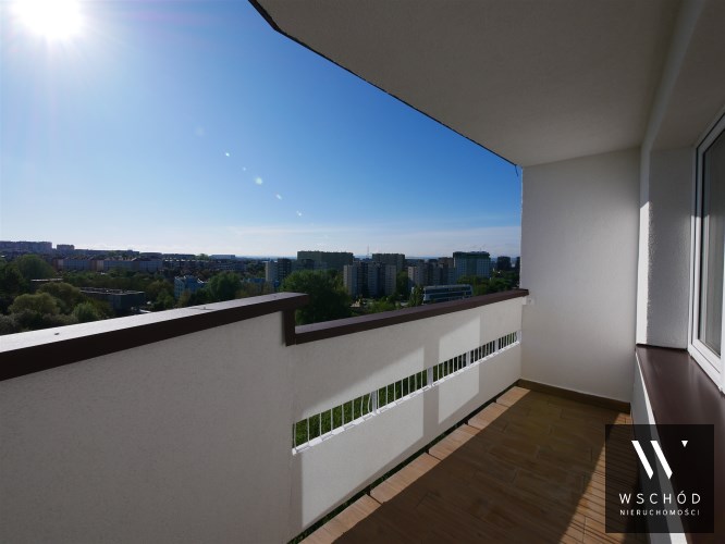 2 pokojowe mieszkanie o pow. 46m2 położone na 9 piętrze 12 piętrowego bloku.