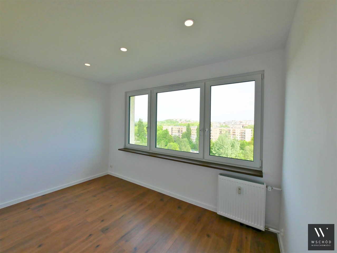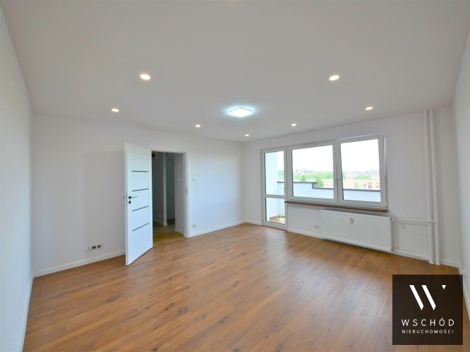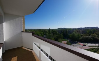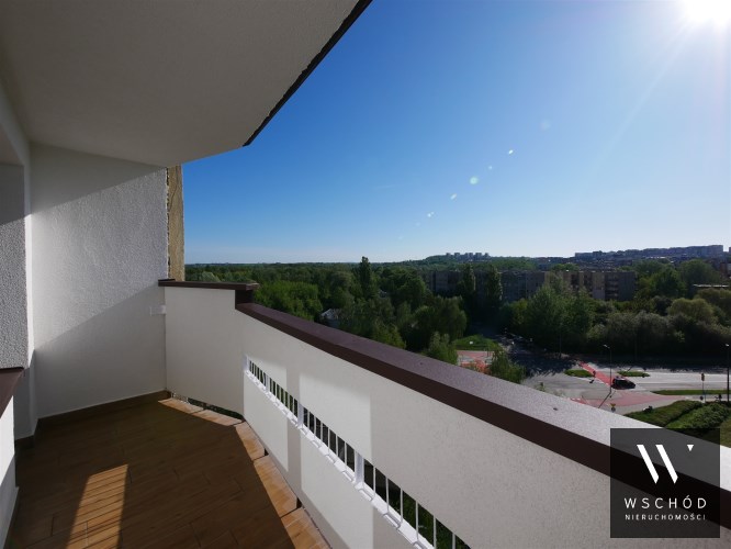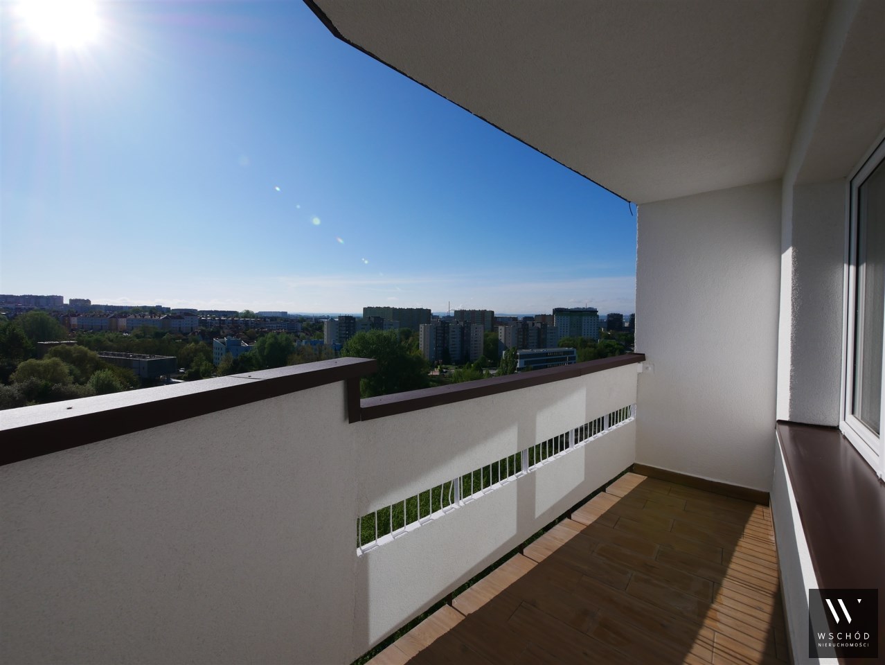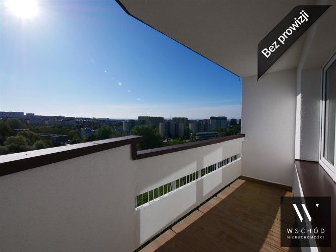 2 pokojowe mieszkanie o pow. 46m2 położone na 9 piętrze 12 piętrowego bloku.