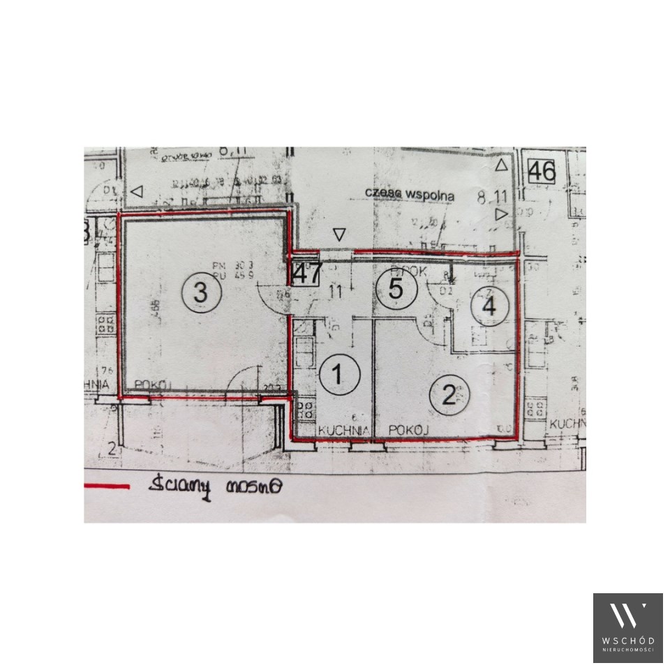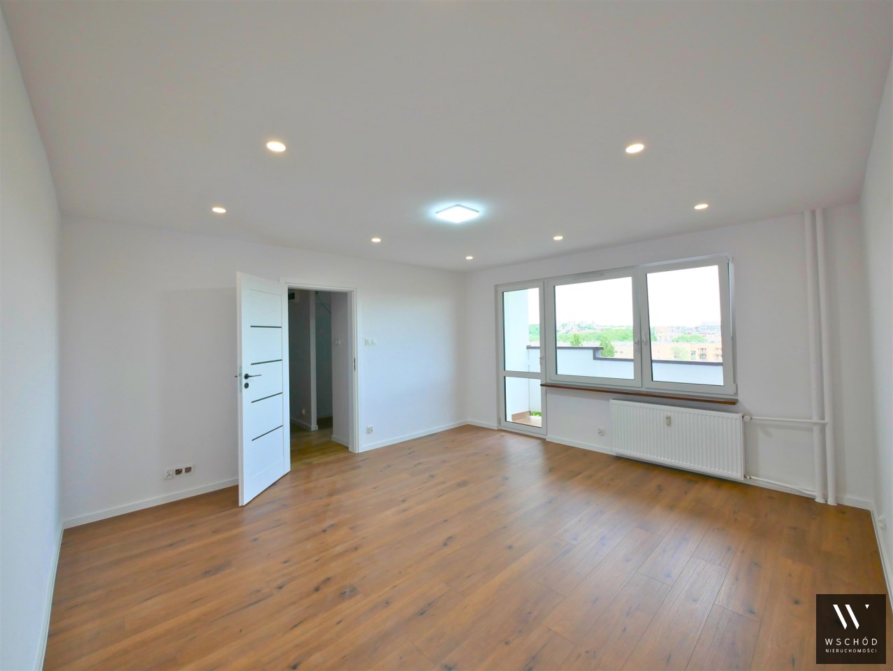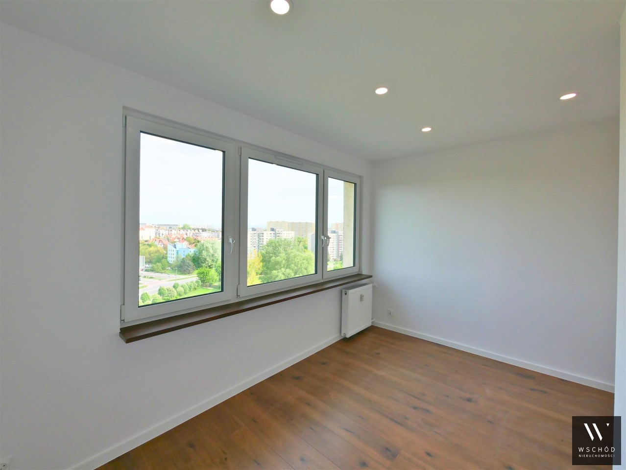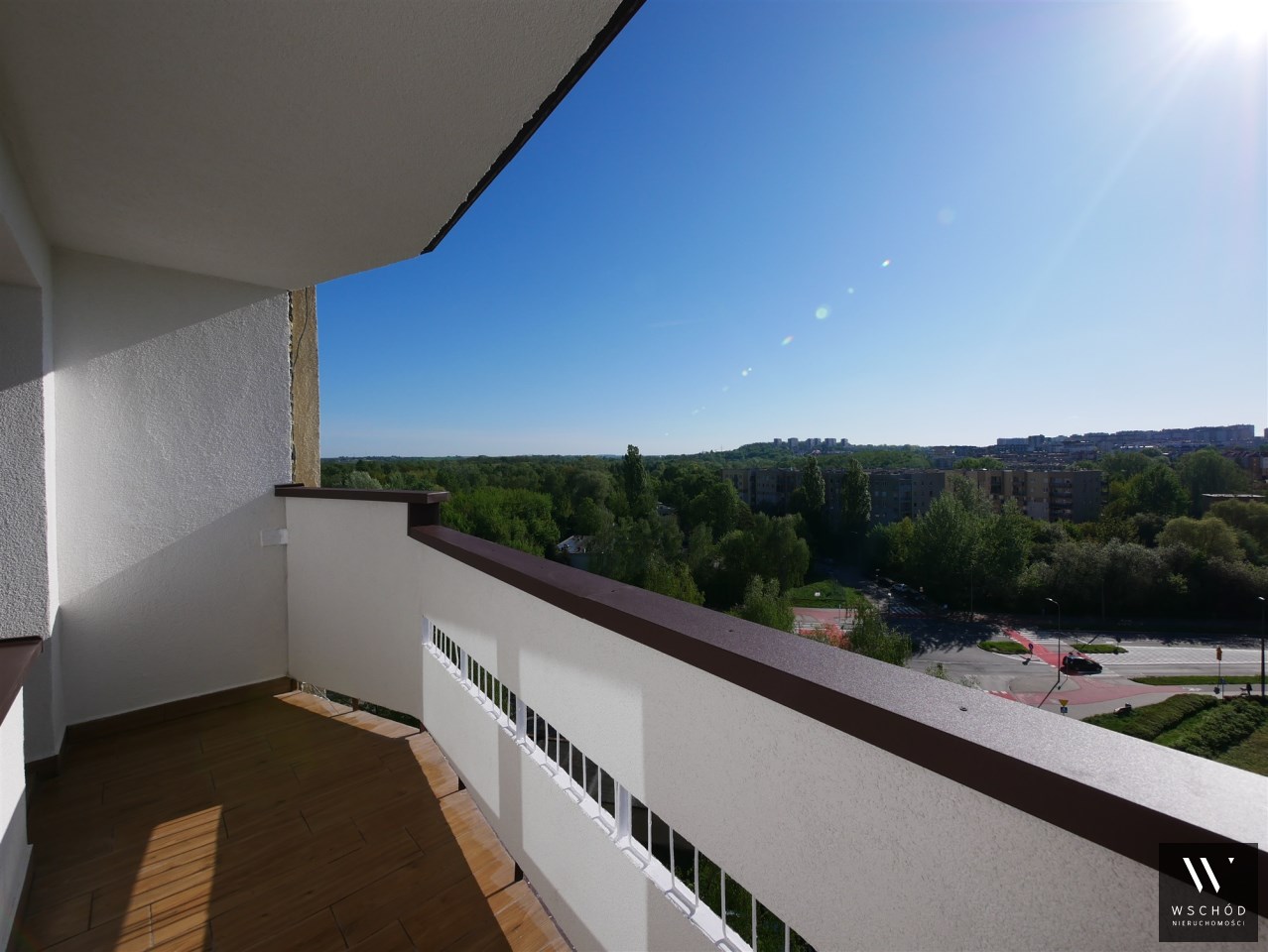 2 pokojowe mieszkanie o pow. 46m2 położone na 9 piętrze 12 piętrowego bloku.