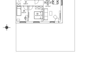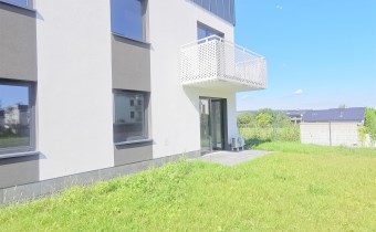Mieszkanie składające się z salonu z aneksem kuchennym z wyjściem na narożny ogród o pow. 90m2, dwóch sypialni, przedpokoju, łazienki.