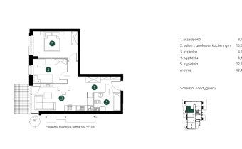 - Mieszkania oddawane w stanie deweloperskim obejmującym m.in. okna PCV trzyszybowe, drzwi wejściowe antywłamaniowe, filtry antysmogowe