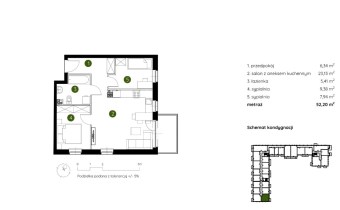 Mieszkanie składające się z salonu z aneksem kuchennym , dwóch sypialni, przedpokoju, łazienki oraz balkonu