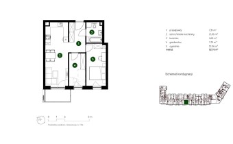 o pow. 52m2 położone na 1 piętrze 4 piętrowego bloku z windą.