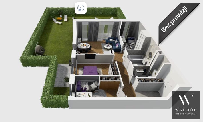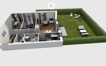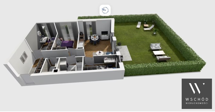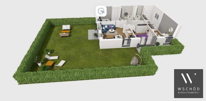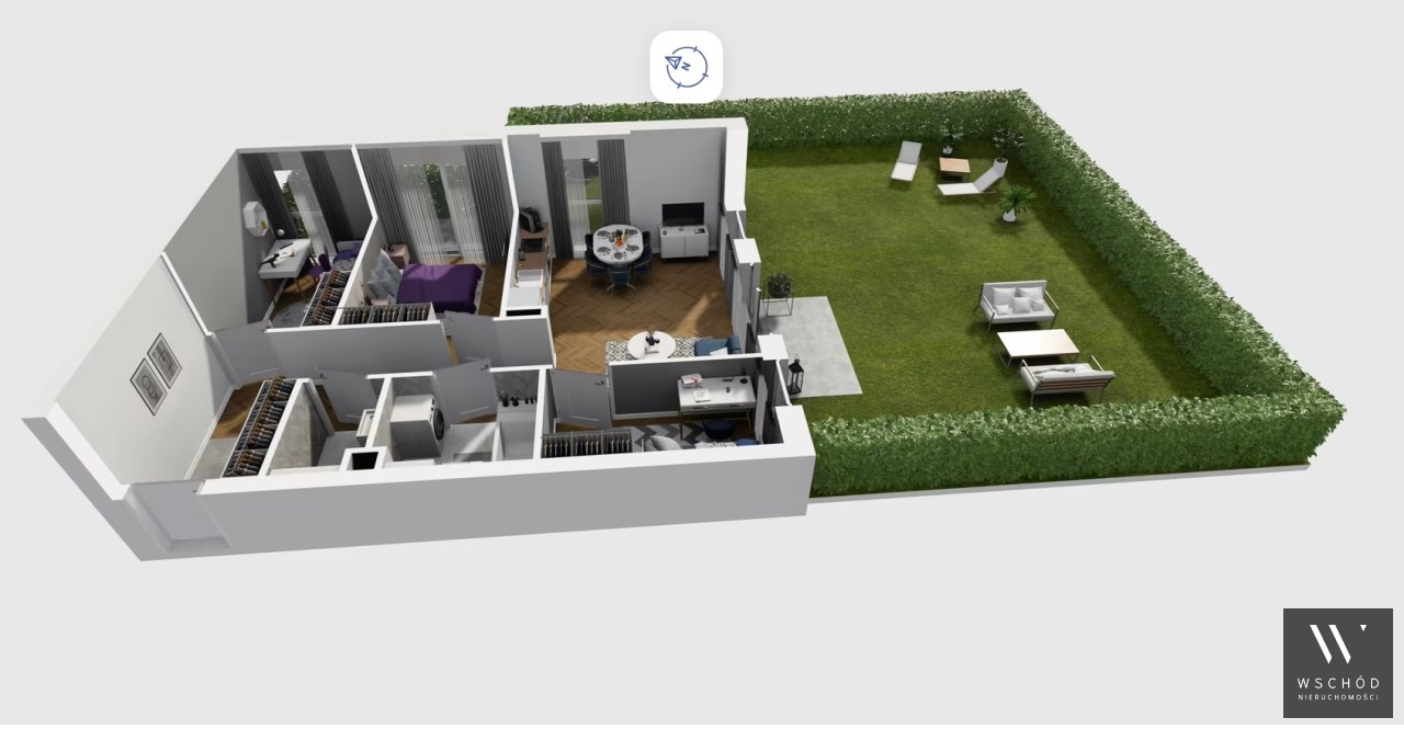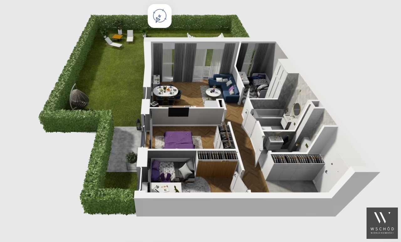 Mieszkanie składające się z salonu z aneksem kuchennym , trzech sypialni, przedpokoju, łazienki oraz narożnego ogródka o pow. 101m2