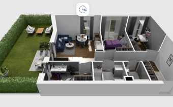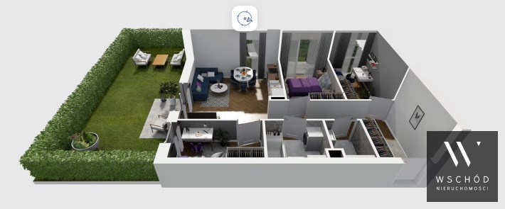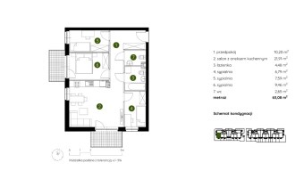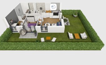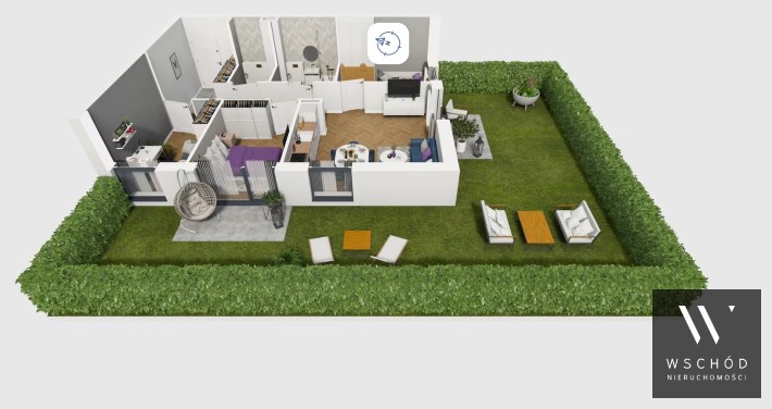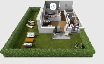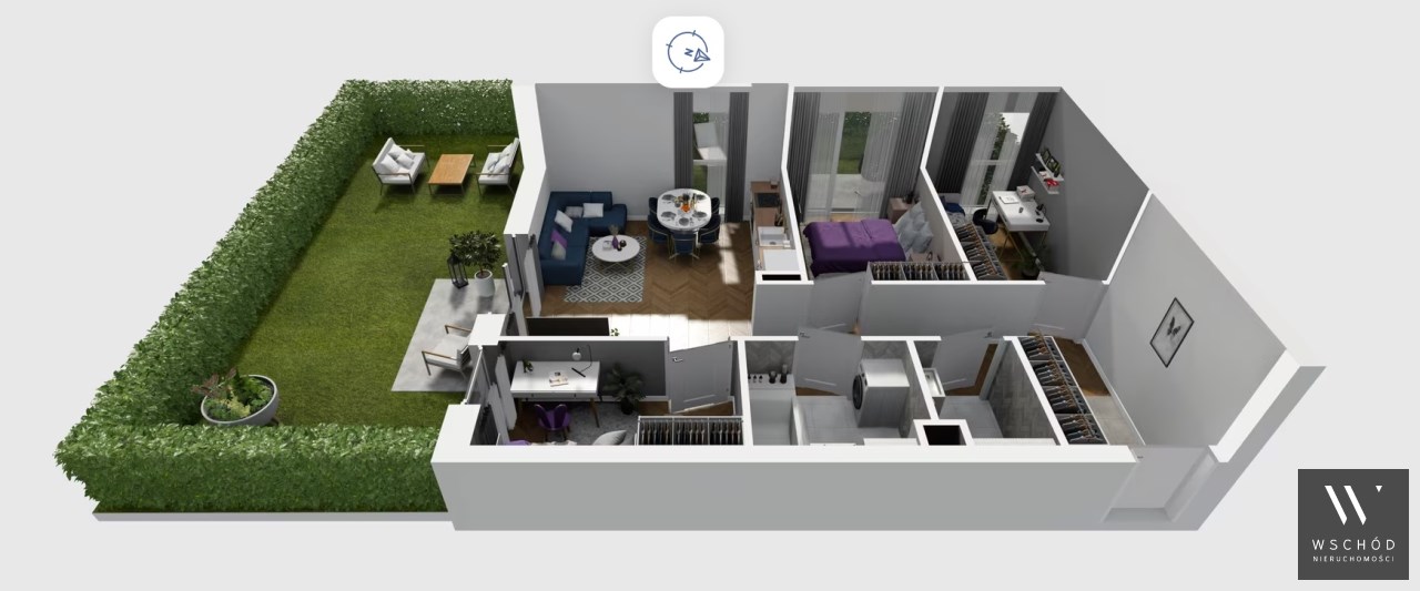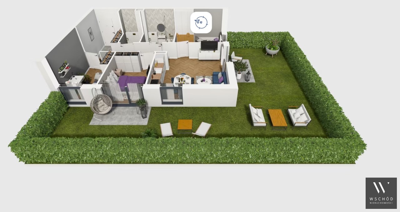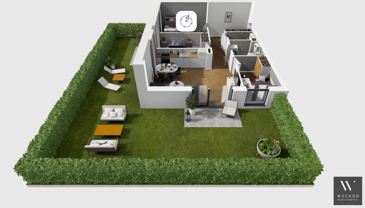 Mieszkanie składające się z salonu z aneksem kuchennym , trzech sypialni, przedpokoju, łazienki, WC oraz narożnego ogródka o pow. 71m2
