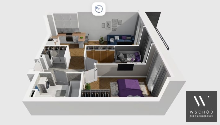 Mieszkanie składające się z  salonu z aneksem kuchennym ,dwóch sypialni,  przedpokoju, łazienki,  oraz balkonu