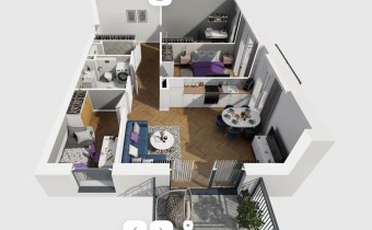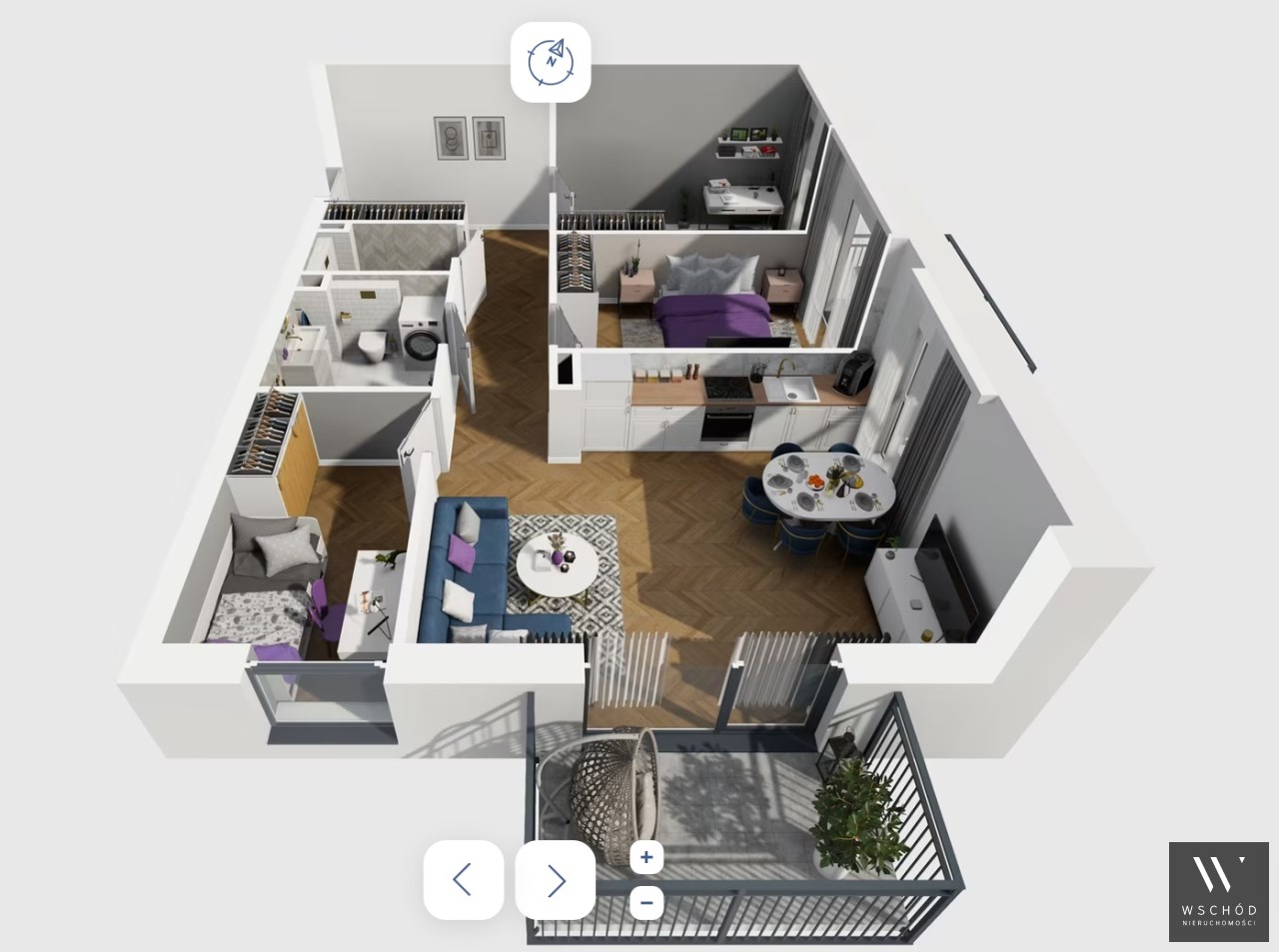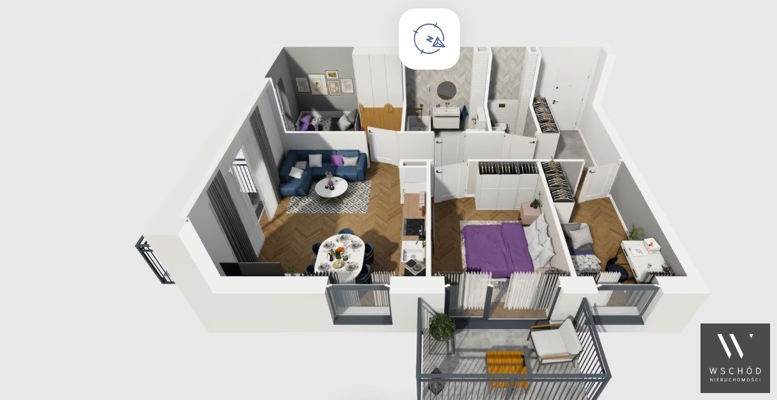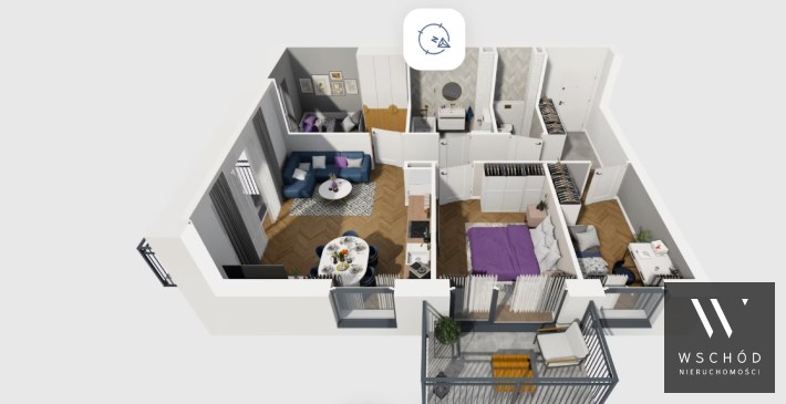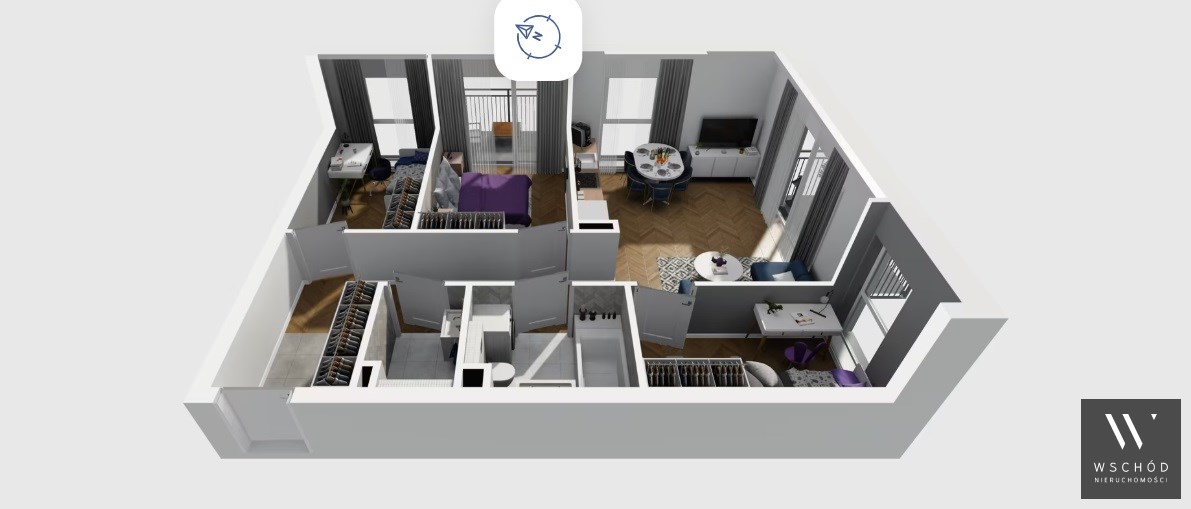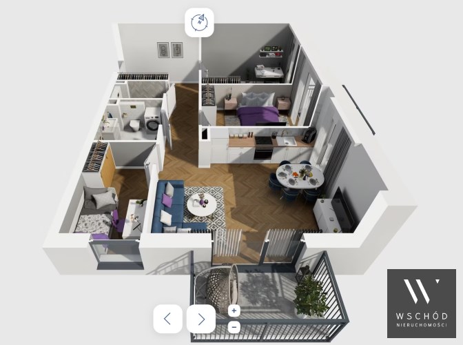 Mieszkanie składające się z salonu z aneksem kuchennym ,trzech sypialni, przedpokoju, łazienki oraz dwóch balkonów