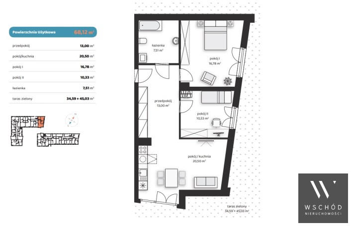 Powierzchnia użytkowa 68,12 m²