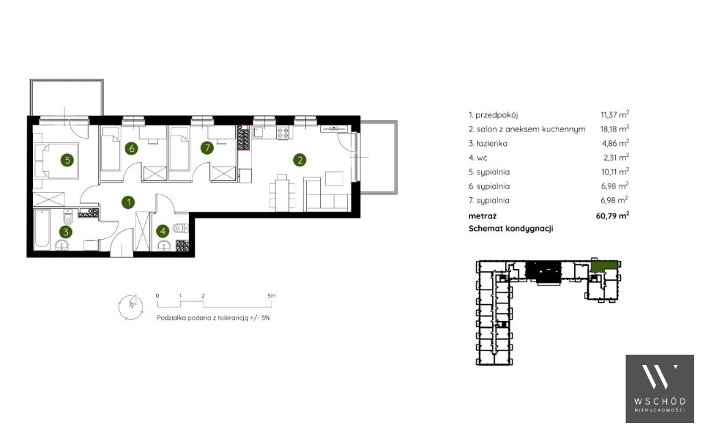 - Ekspozycja okien: północny wschód