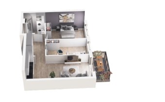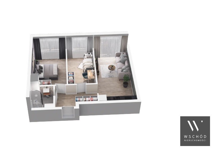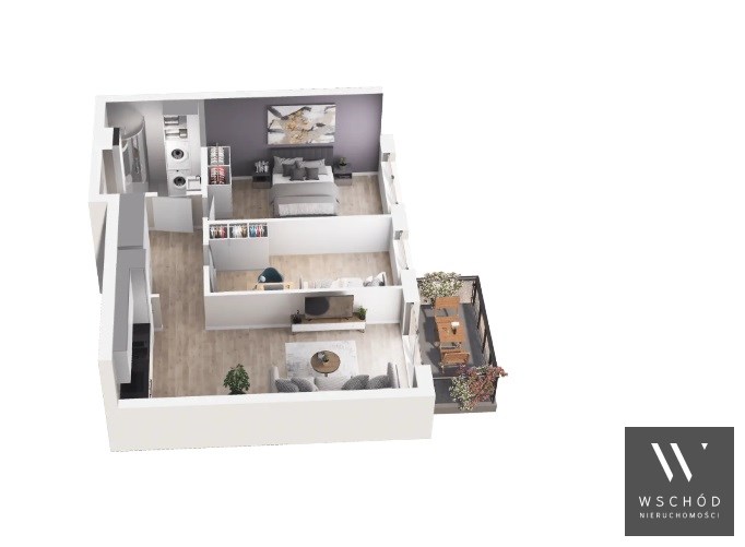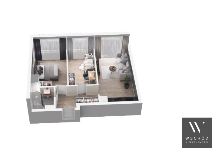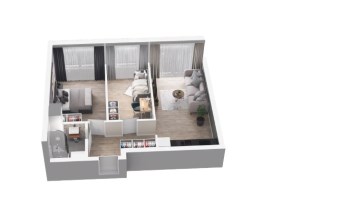 Mieszkanie składające się z salonu z aneksem kuchennym, dwóch sypialni , przedpokoju, łazienki oraz balkonu