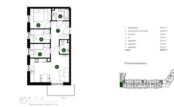 o pow. 60m2 położone na 4 piętrze 4 piętrowego bloku z windą.