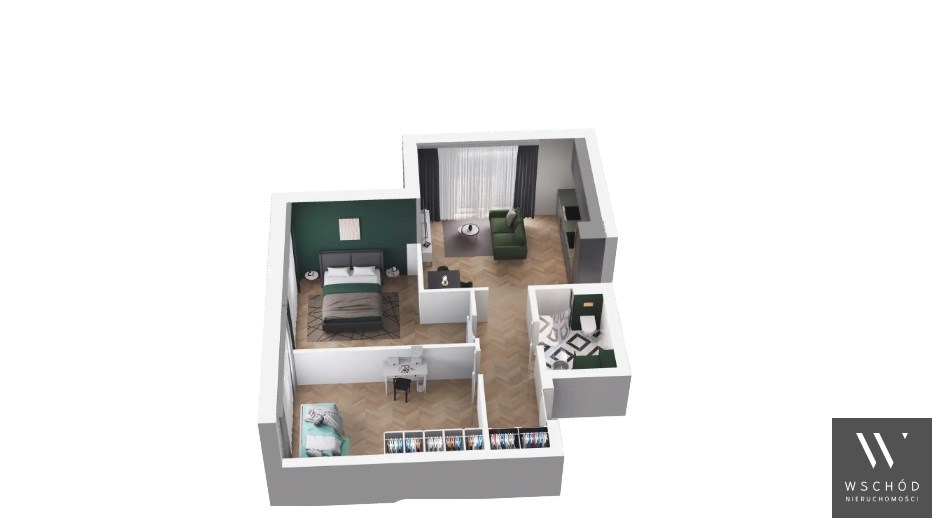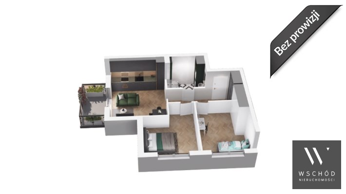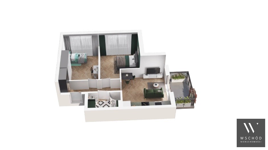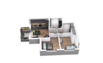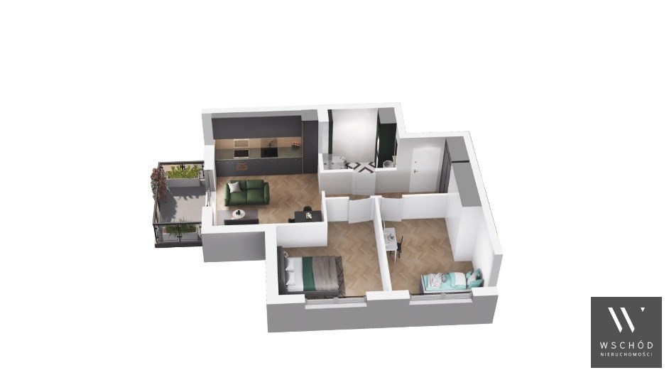 Mieszkanie składające się z salonu z aneksem kuchennym, dwóch sypialni , przedpokoju, łazienki oraz balkonu