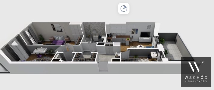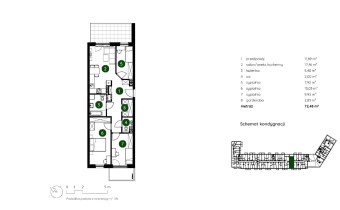 Mieszkanie składające się z salonu z aneksem kuchennym, trzech sypialni, przedpokoju, łazienki , WC, garderoby oraz dwóch balkonów