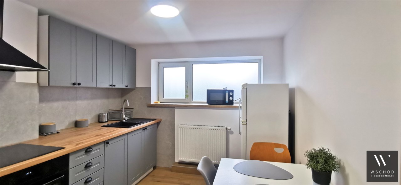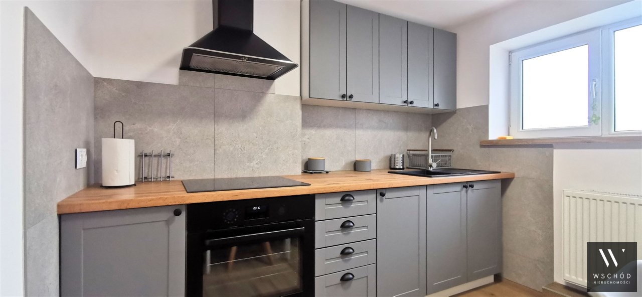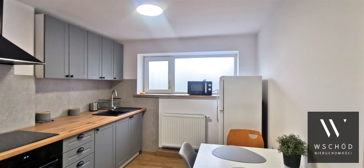 - Po generalnym remoncie ( na podłogach płytki, łazienka z prysznicem, kuchnia umeblowana).
