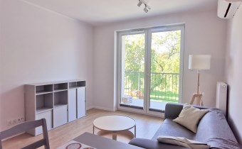 Mieszkanie świeżo wykończone, składające się z salonu z aneksem kuchennym, sypialni, przedpokoju, łazienki oraz balkonu.